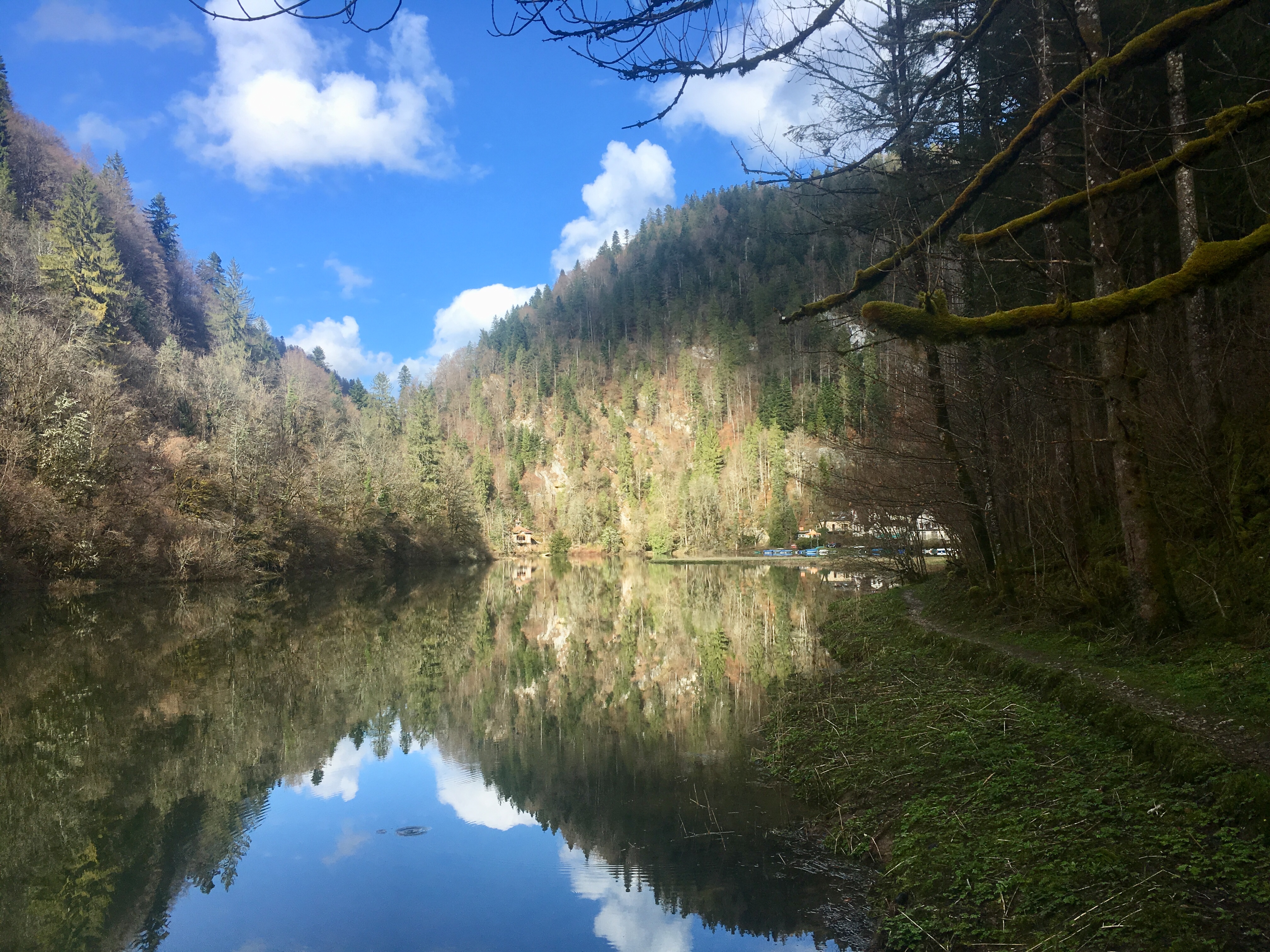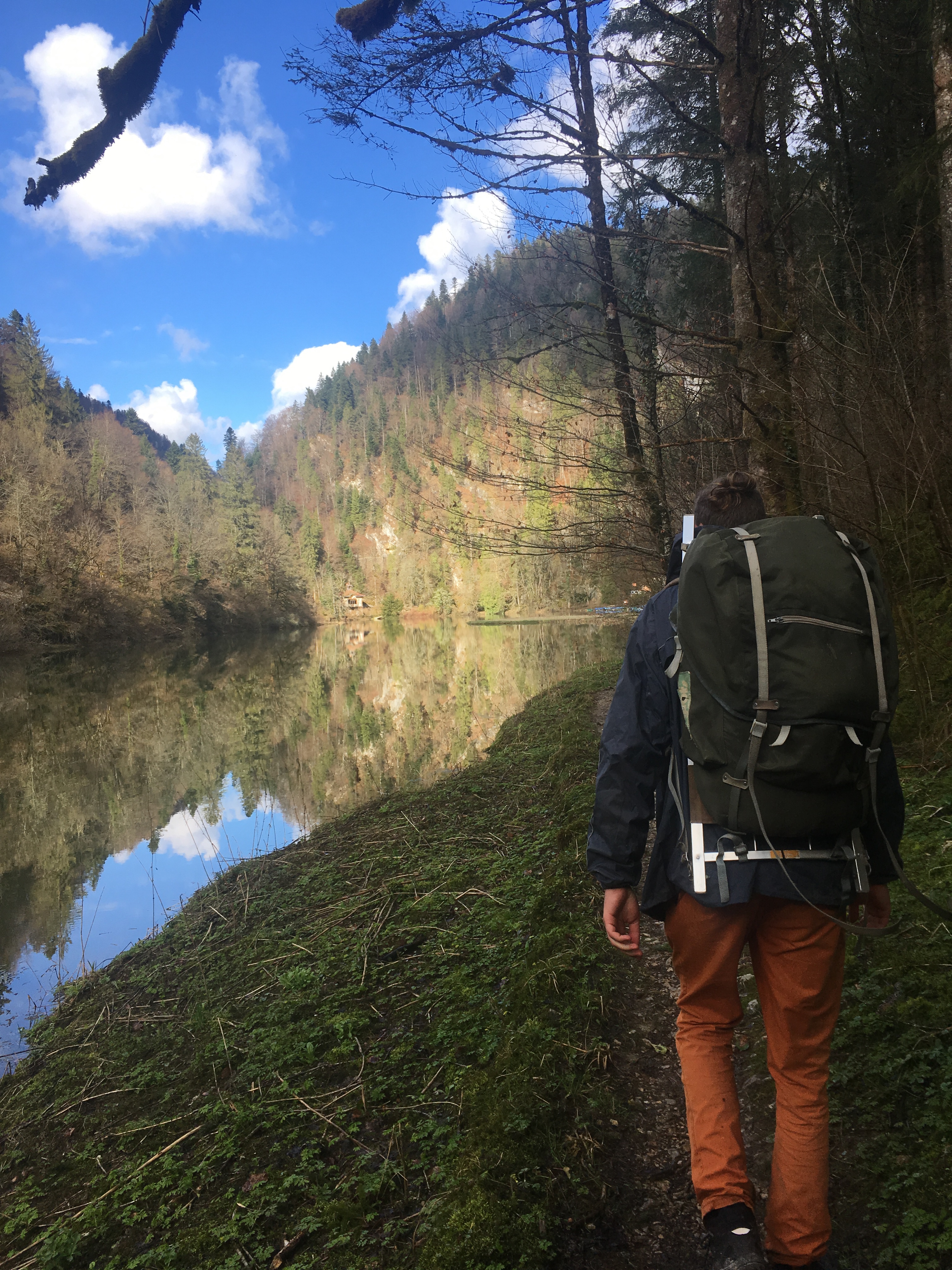 Biaufond presented itself in a very different atmosphere compared to last time I was here. Drenched it sunlight, surrounded by juicy green pastures, I dare to say it felt a bit less mystical; but instead it was inviting to make rest at the lakeside, lay in the grass and get lost in the blue sky above. Even though that seemed like a very attractive option, we chose to march on.