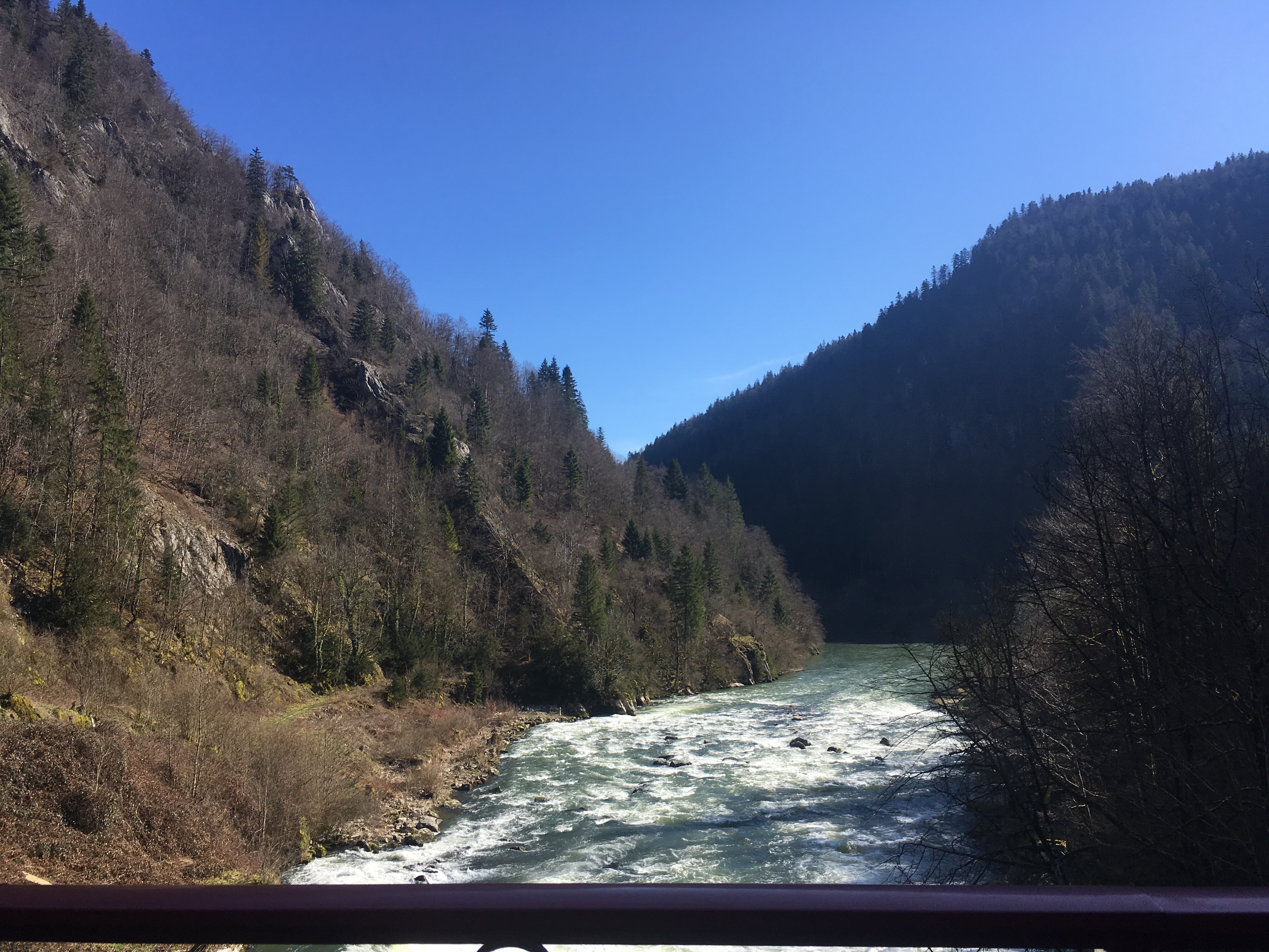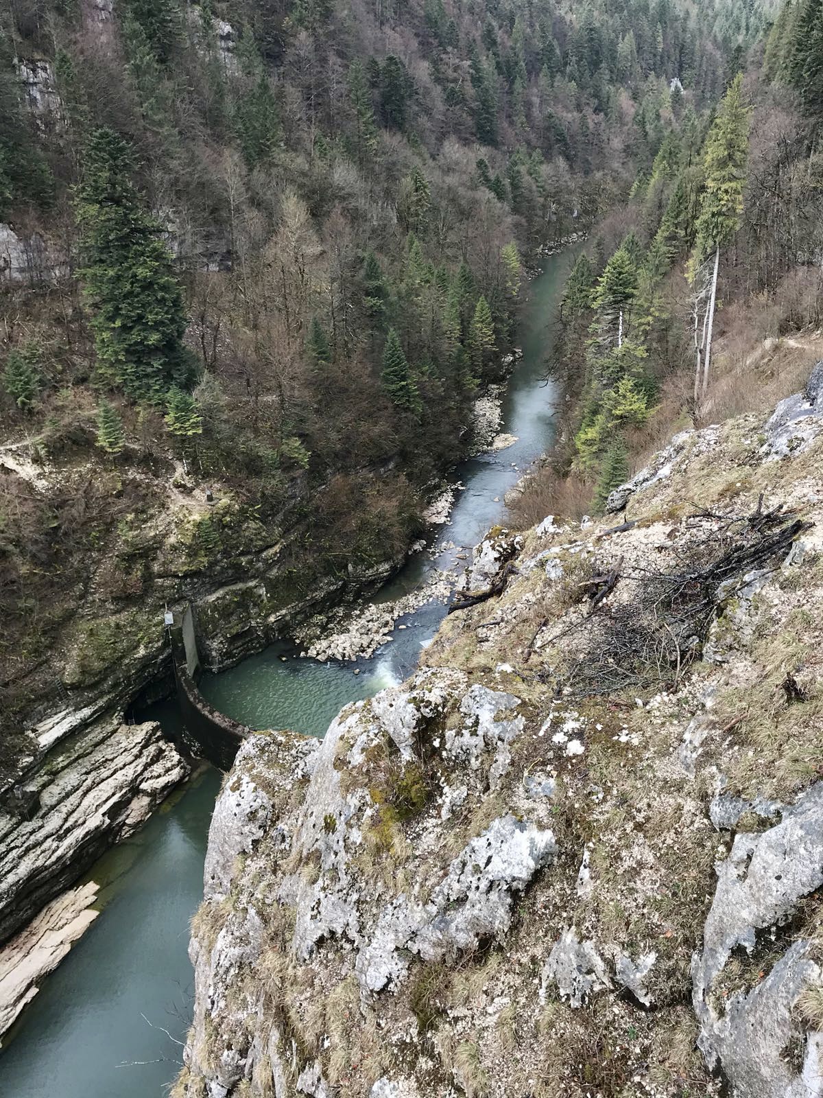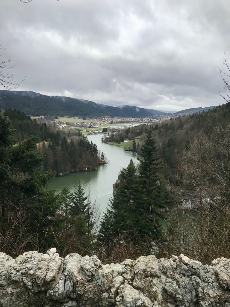 So with our motors all fueled up again, we continued our journey through the canyon with a slender calmly flowing Doubs to our left and steep rocks to our right.