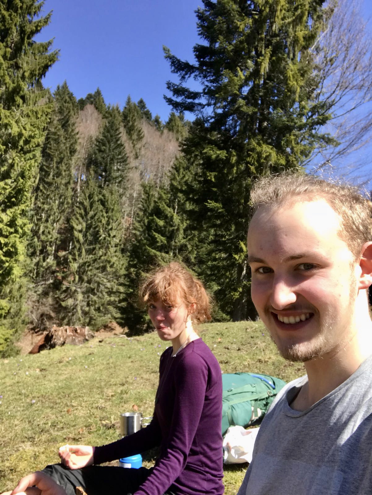 We continued on in the direction of Cul de Prés, a lake nestled in a forest clearing, which had fascinatingly light blue-ish water. Taking another moment to rest and enjoy the calm atmosphere surrounding the lake, we sat at the picnic table, eating a “late morning snack” (Merry-and-Pippin-Style 😉 ) before we continued the trail, leading us around the left side of the lake.