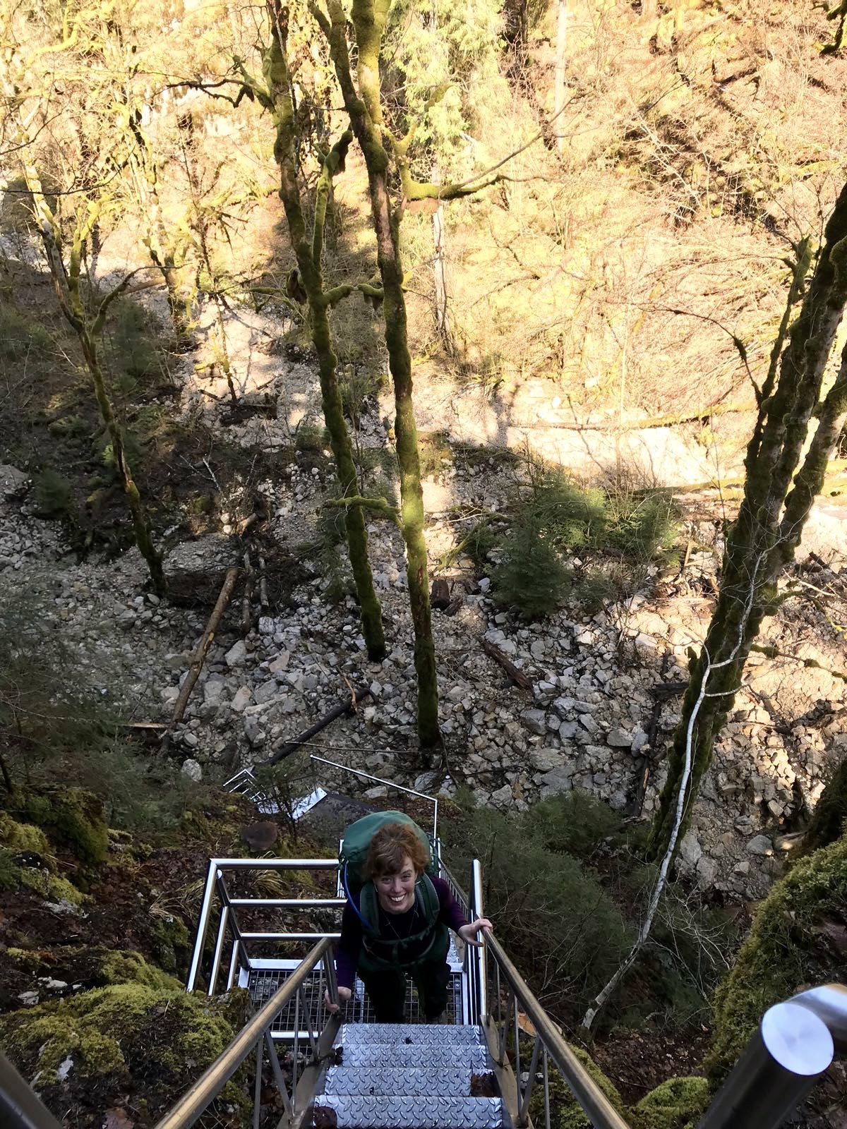 Sam not experiencing any fear of heights, had to stand close to the edge and enjoy the view from above over the valley that we just crossed.