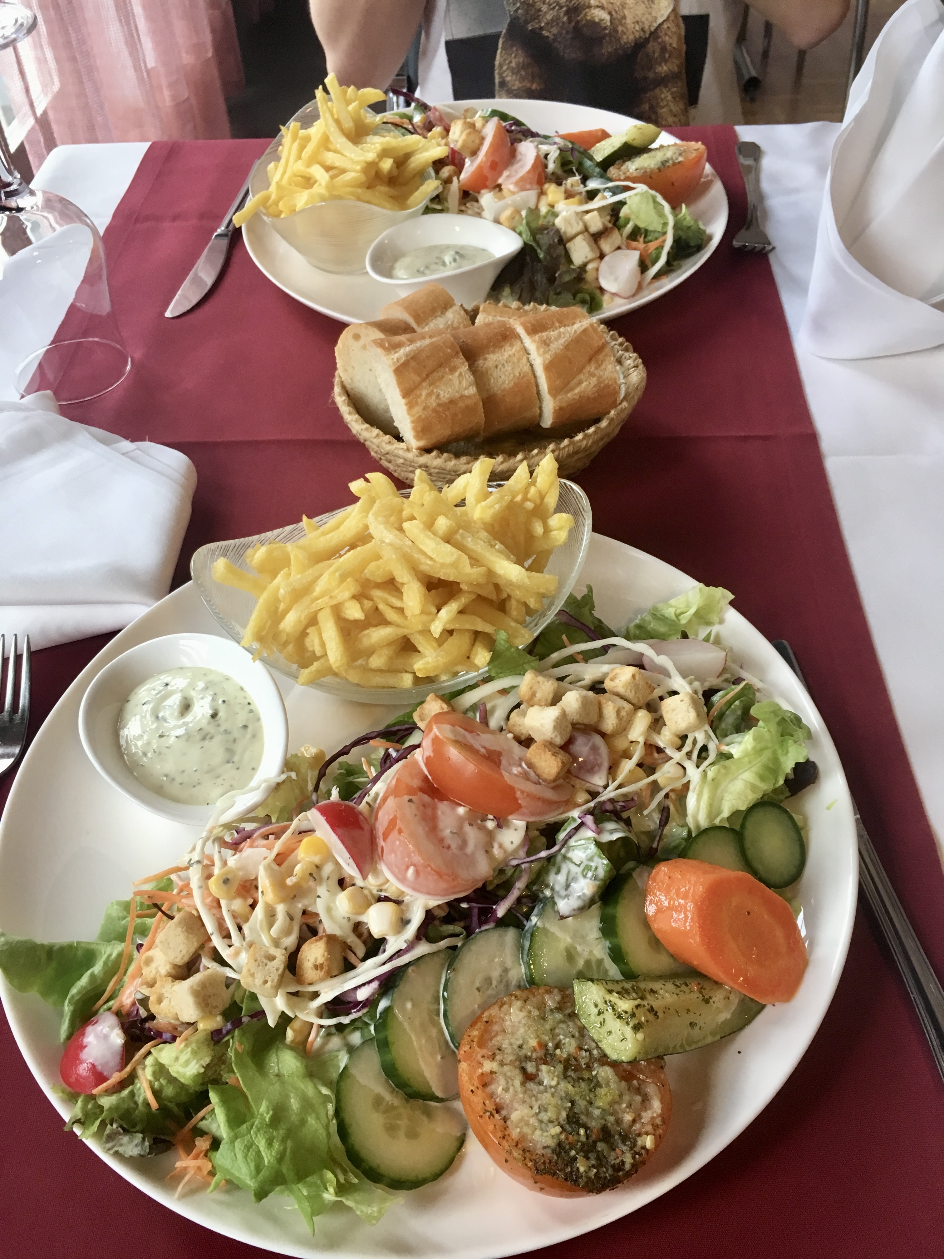 Typically one of course orders fish in a place, where it can be more or less gotten directly out of the water; but since we are both vegetarians, we ordered a big plate of salad with a side of fries (and the most delicious Sauce Tartare) as well as a cold beer. A couple of rounds of Hanabi (a super fun card game) later, we fell into a deep sleep. And even though my feet and my shoulders hurt from the hike today, I could not wait to put my shoes and my backpack back on and continue the hike tomorrow.
