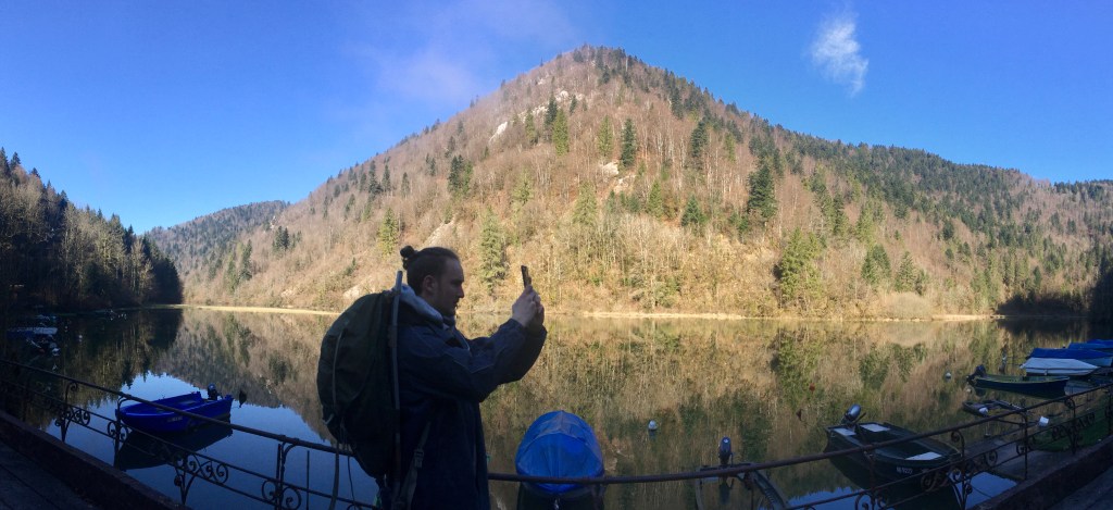 The next morning we where again greeted by fog and clouds but unlike the day before, the sky already opened up, when we stepped outside after our breakfast, offering yet another beautiful view of the lake and the surrounding hills.