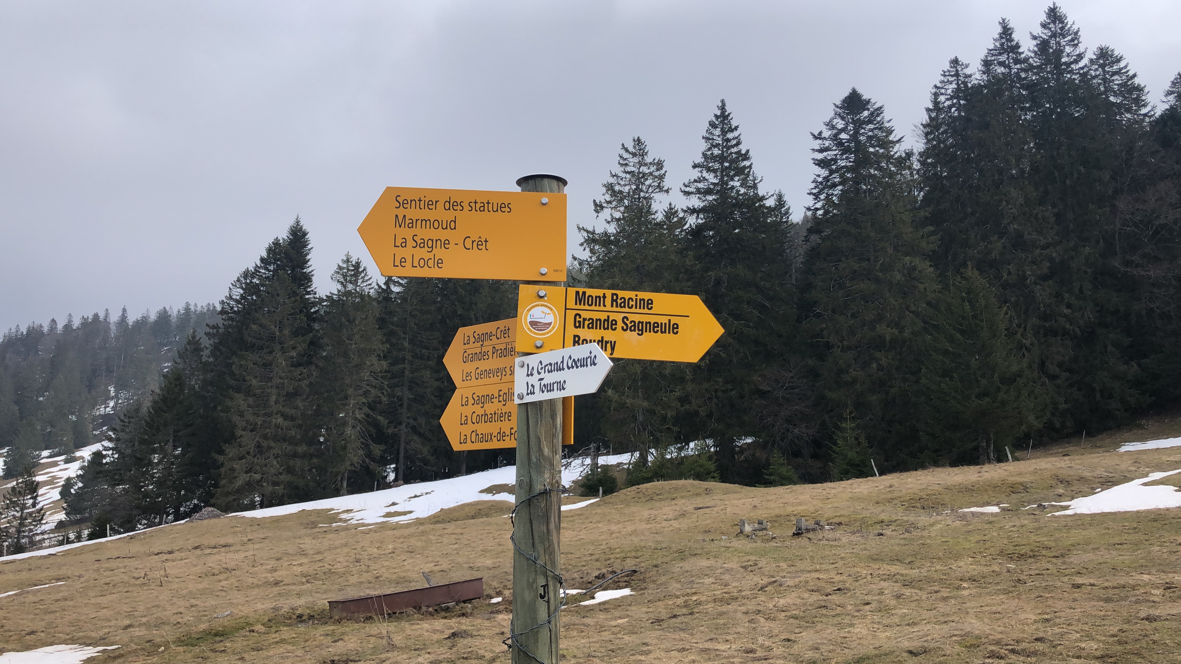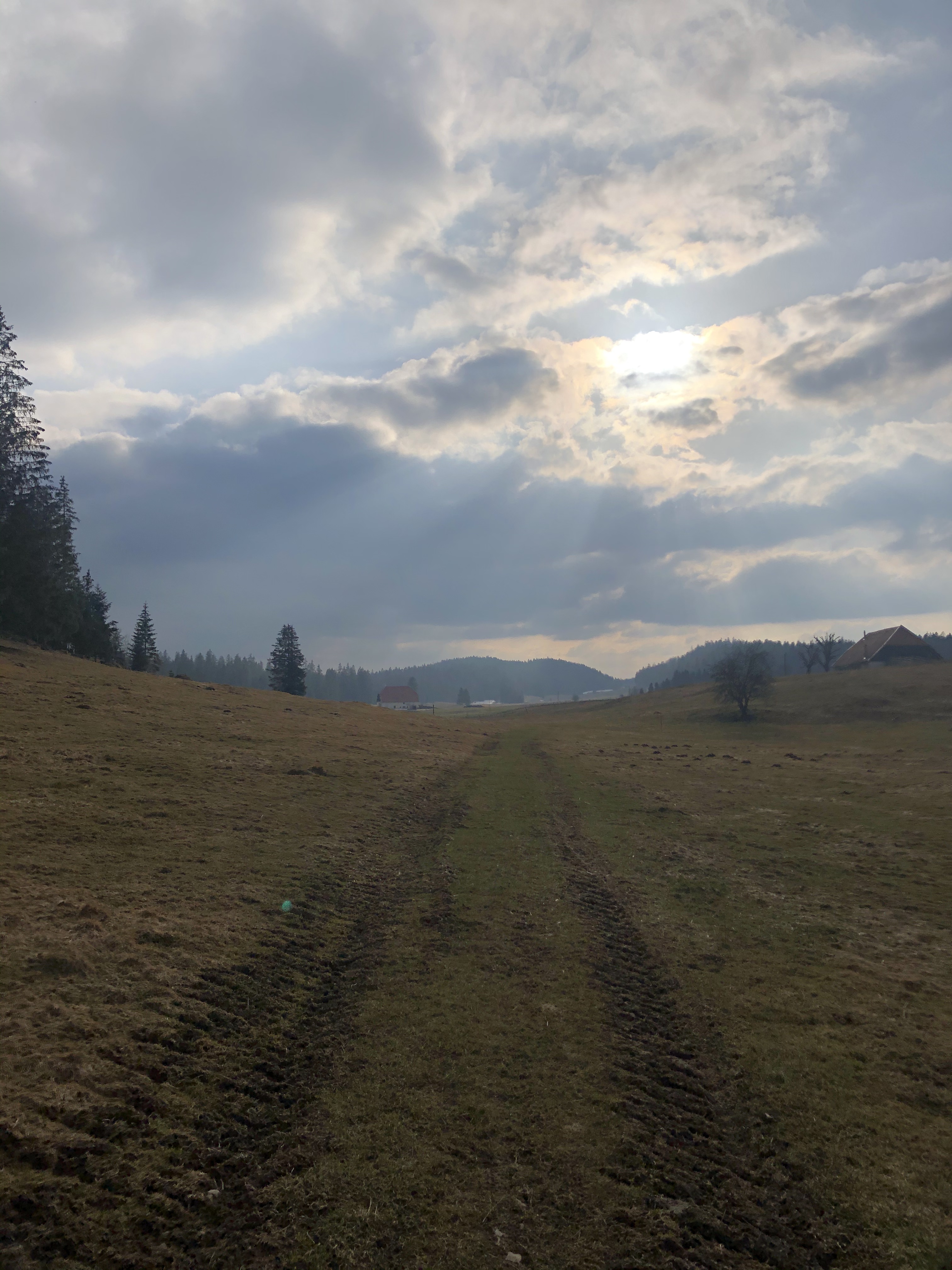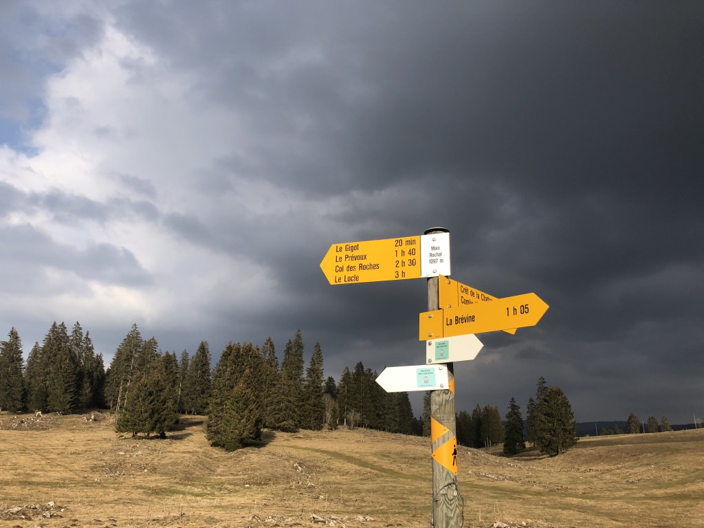 I felt a deep appreciation of being in solitude, nothing obstructing my view, feeling the wind blowing through my hair. But it was also here, were I started to get confused as to where to go next. I did at this time not yet have my SchweizMobil Online App and also didn’t bring a map with me. So all I had were those names of various locations on the way to La Brévine and many of them I couldn’t find on any of the hiking signs along the way.