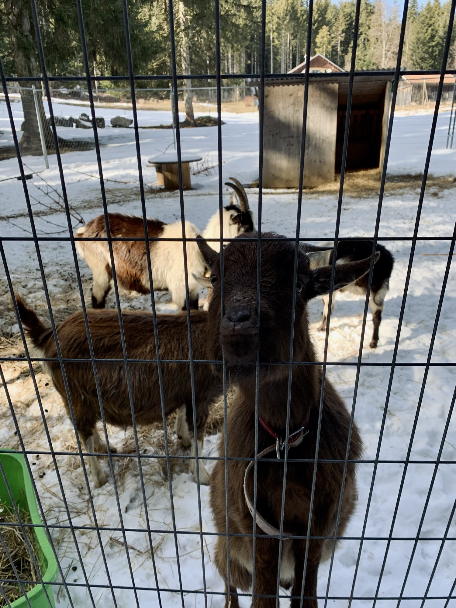At Le Prévoux, having gained some elevation, we came across quite some snowed in trails and were for a moment even considering taking the bus to La Brévine instead of walking. We ultimately – and luckily- decided against it and marched on. The path led through the forest Bois de Bétod, gently ascending and we made some new four legged friends along the way.