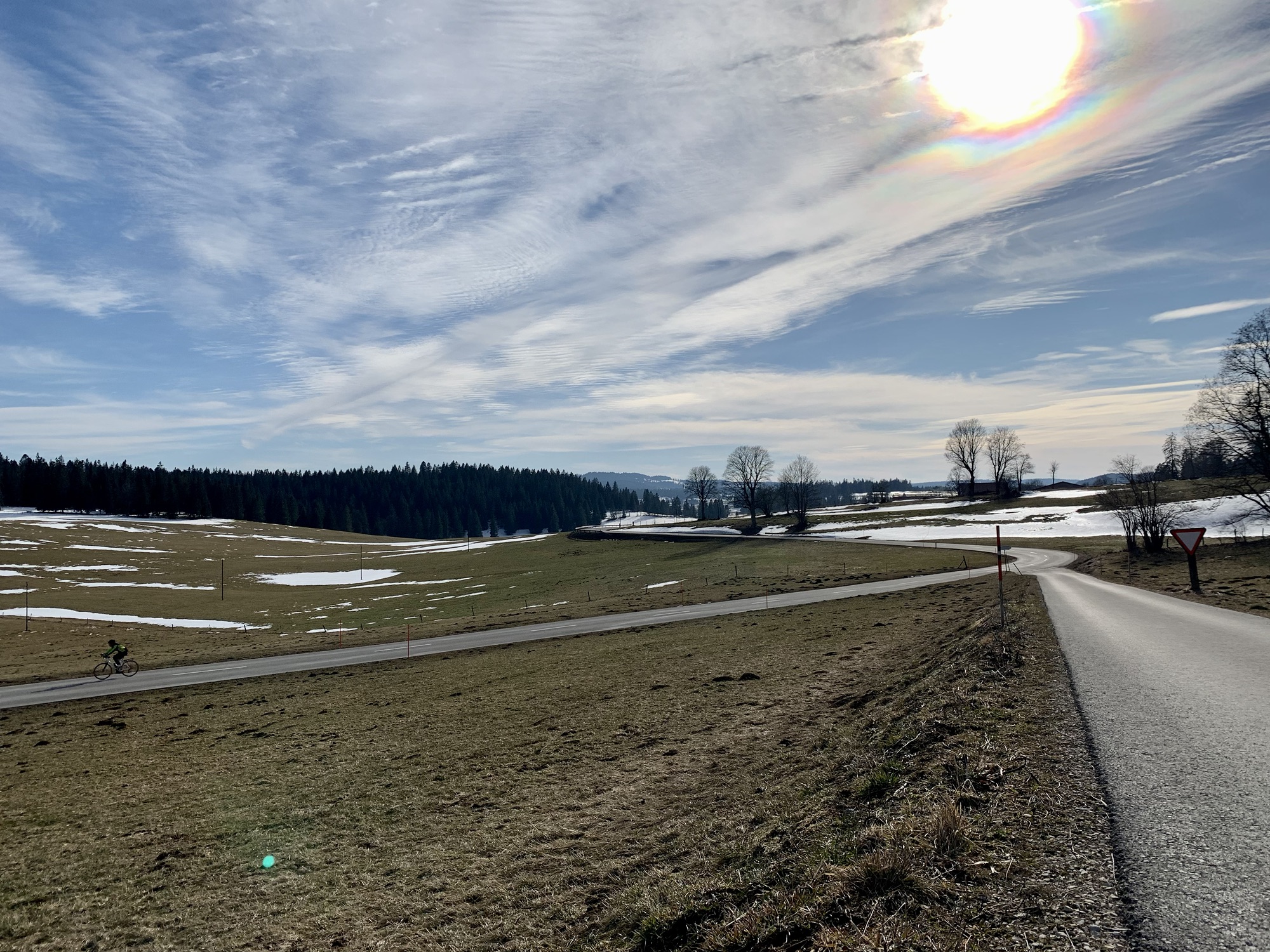 Descending through the Mauvaise Combe, a rather steep (but not exposed!) valley with very little to see, I reached a bus stop on the side of a rather busy car road. It was here where I had to admit a (temporary) defeat. I couldn’t really see another trail, that would lead me to La Brévine in time before it got dark. As faith would have it, I arrived just 5 minutes before a bus would come. So I took this as a sign and drove to Le Locle to make another plan from there.