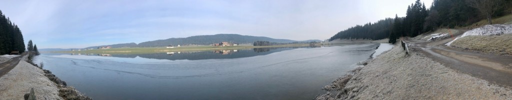 I was particularly exited to see the Lac des Taillères, a 1.9 km long lake close to La Brévine. A legend says that the Lac des Taillères suddenly appeared one night after a subsidence in the earth and the forest that stood there before had simply disappeared. I reached the lake via a descent over an asphalt track and the path led along the lake about half way before branching off and ascending again towards the forest Les Cotards Dessus.