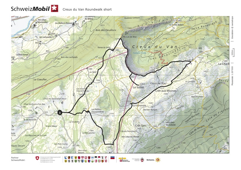 | Parking Creux du Van to Parking Creux du Van | Difficulty: T1 (Hiking Trail) Length: 11.37 km Duration: 2:59 h Ascent/Descent: 322m/321m |