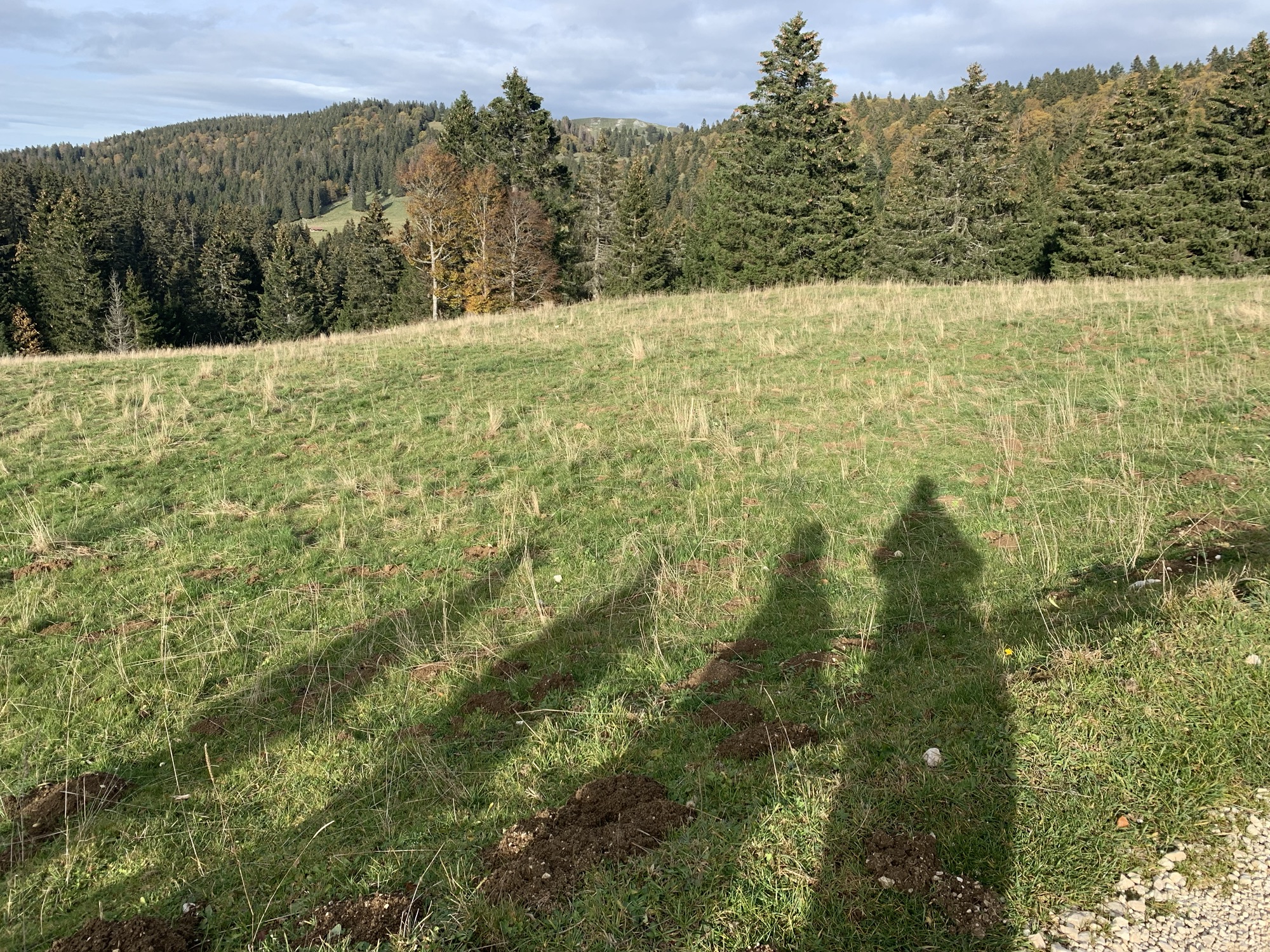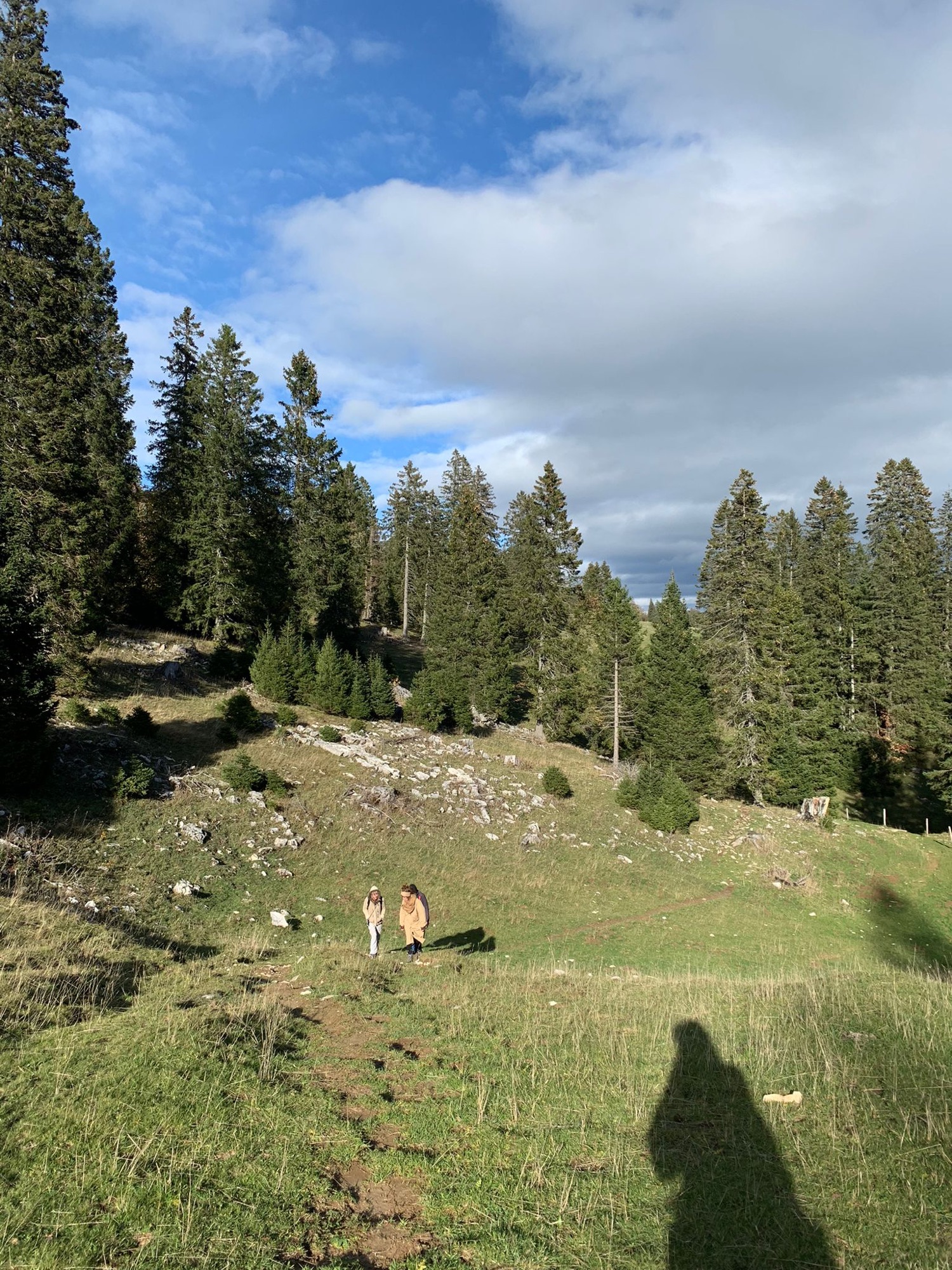 We chose a relatively sunny Saturday afternoon for our trip to the canton of Neuchâtel together with my parents Markus and Sibylle and started our walk at the parking spot Parking Creux du Van and made our way towards Les grandes fauconnières. Leading over meadows and through groups of tall fir trees, the route rarely followed a clearly marked path, which made it feel all the more as if one was just arbitrarily walking – with no intention other than enjoying the walk. The floor was covered with various mushrooms and we tried to identify some of them, googling recipes and getting hungrier with every step.