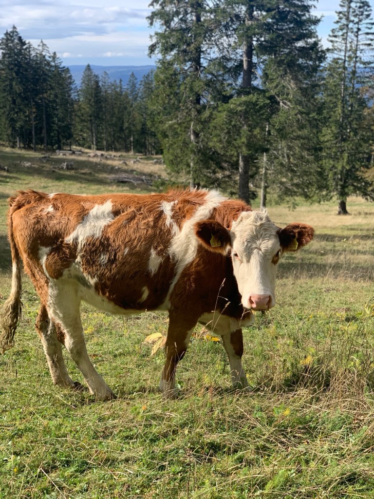 After about 1.3 km on the Jura Crest Trail, our path suddenly took a sharp right into the field, which we naturally missed in the midst of our cheerful conversations and marvel at the beautiful, unique landscape and had to turn back around. Through a forest and over rolling pastures we soon reached the farm and alpine restaurant Les Petites Fauconnières, which was sadly closed and didn’t allow for an afternoon coffee and pie as I hoped.