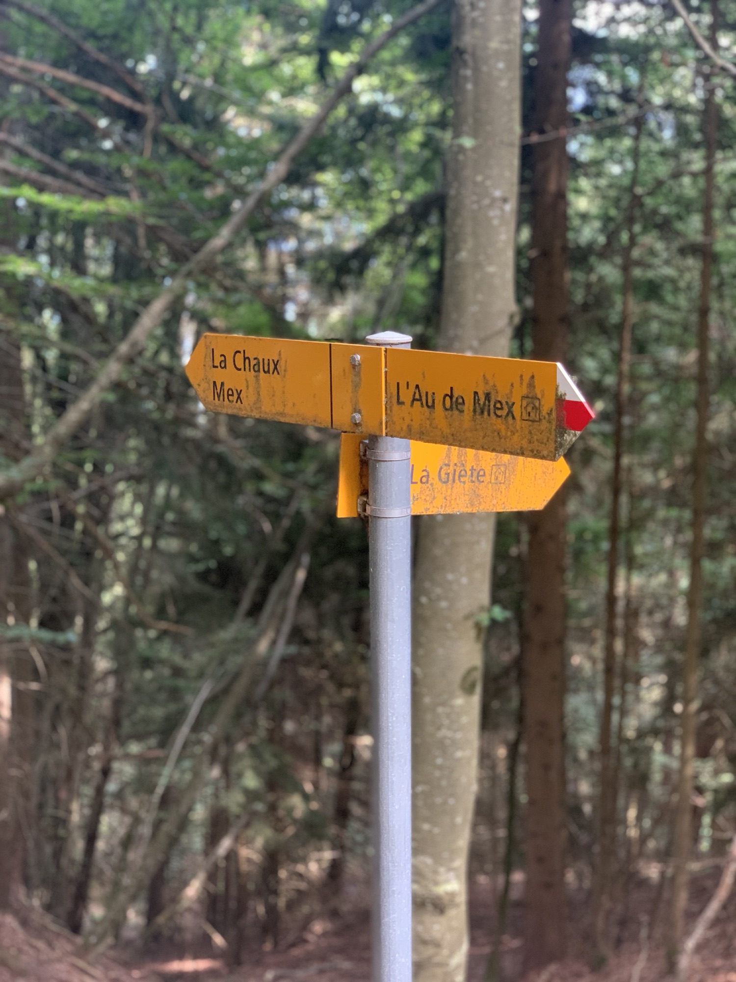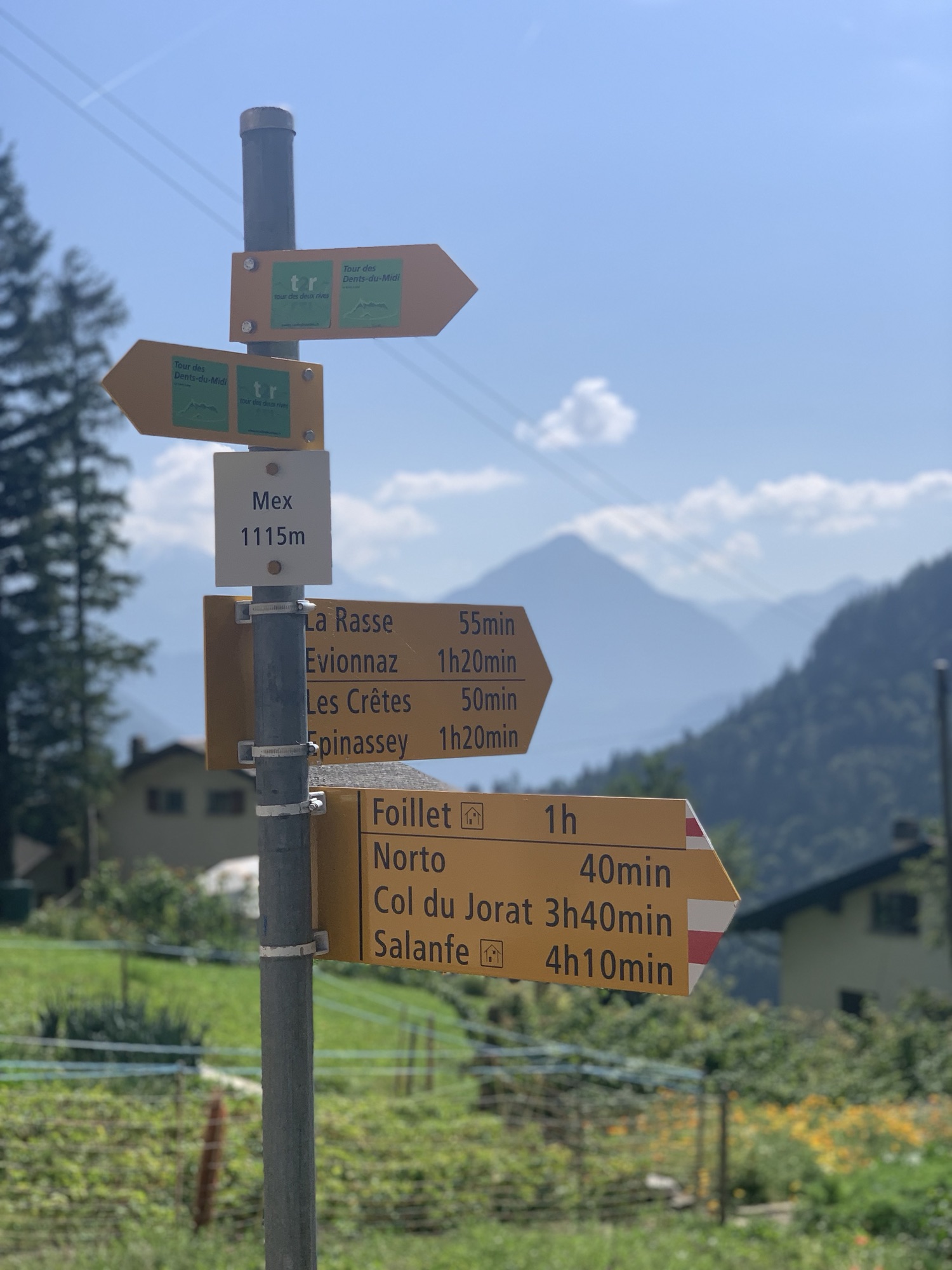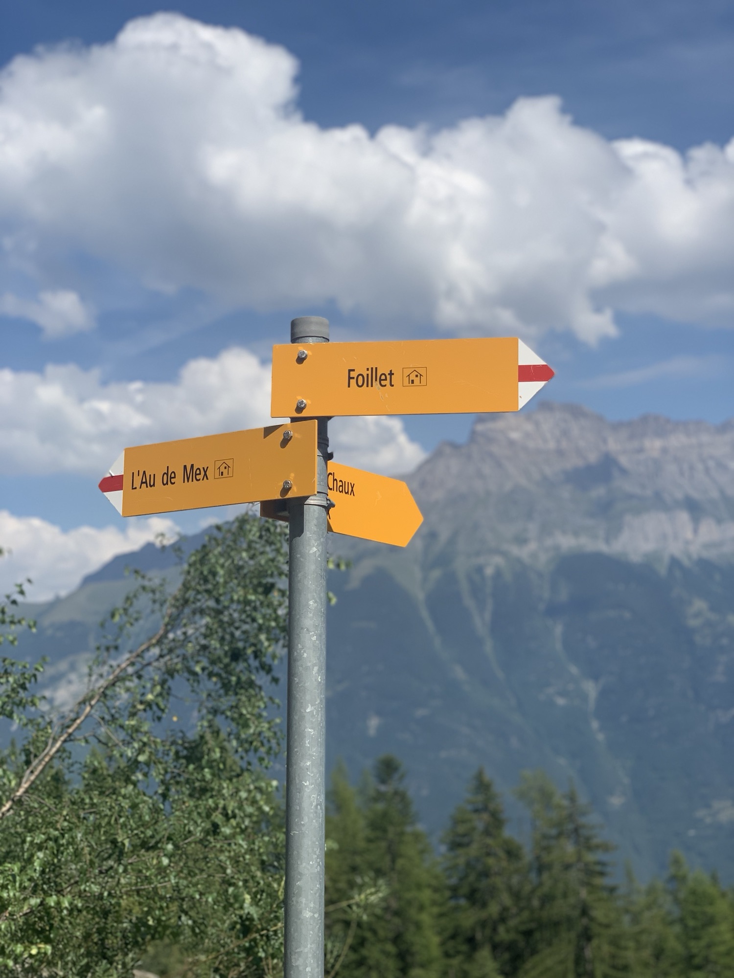Before crossing the meadow it seems our path became a bit of a confusion as I think the map online and the trail signs were not really telling the same story. For a moment it seems (at least according to the map) we even went off the hiking trail. But it truly doesn’t matter – the route we walked was perfect as is and I can only recommend it – especially so you won’t miss out on the beautiful meadow. There were signs relatively regularly and we followed the trail sign to La Chaux/Mex.