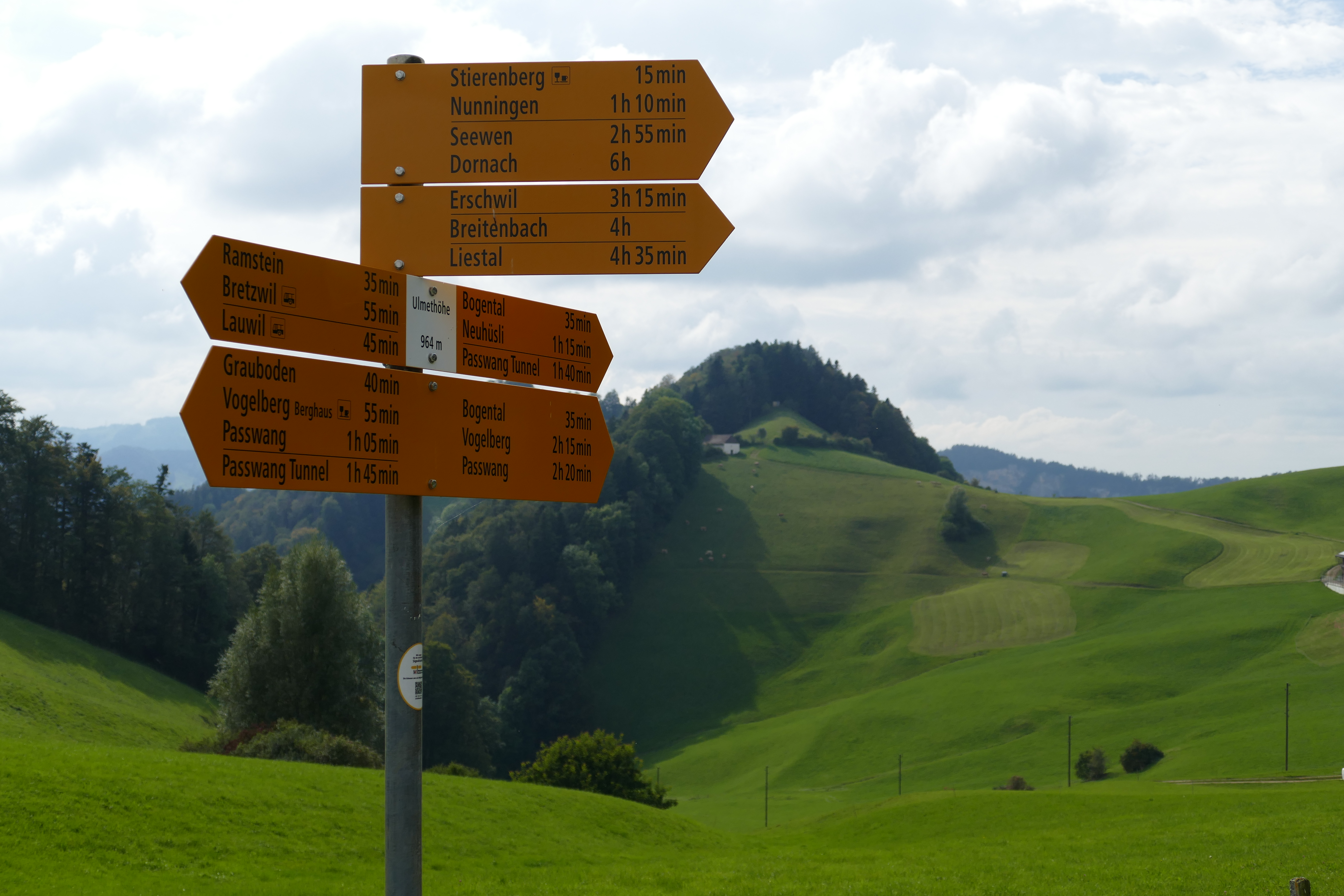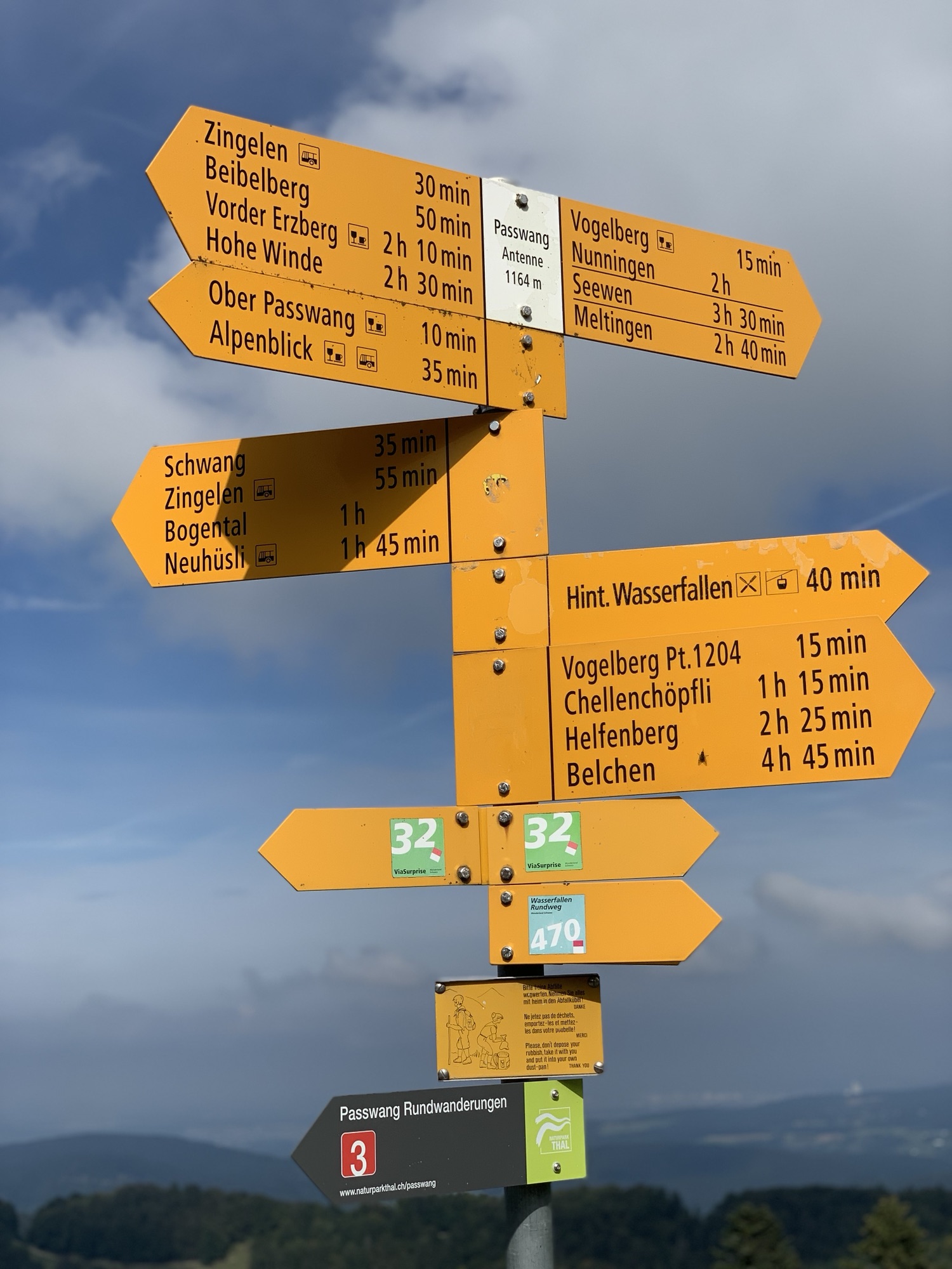It was a relatively sunny afternoon when we got in our car and drove to the starting point Zingelen from where we eagerly started walking. To the Vogelberg it was supposed to be an approximately one hour hike and we started on a gently ascending trail almost right away. After we passed Ober Passwang and its well visited restaurant, we continued up to the “Passwag Antenna”, from where we had our first stunning view over the rolling landscape and in the far back the city of Basel and even the Schwarzwald.