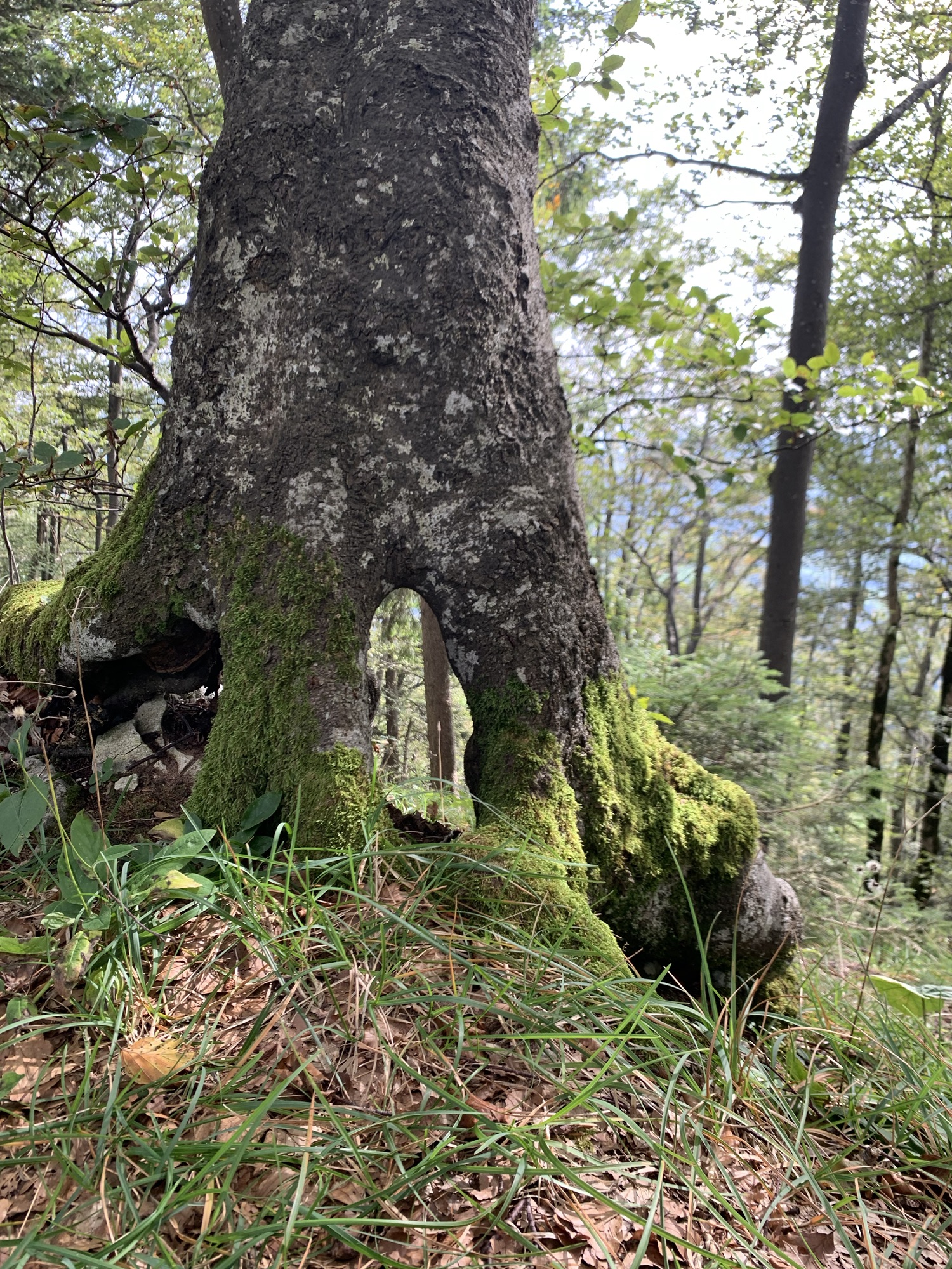 We continued our descent through the dense forest inhaling it’s signature earthy woody scent and admiring natures artworks; the colorful mushrooms growing on the tall tree trunks, the lush mossy robes of the branches and the smooth unique surface of the wood. To me it feels as if every forest has a very individual DNA; while the structure and trees species may be the same – in this area we have a lot of deciduous trees, mostly beech as well as the silver fir – I still always feel as if I could somehow tell them apart.