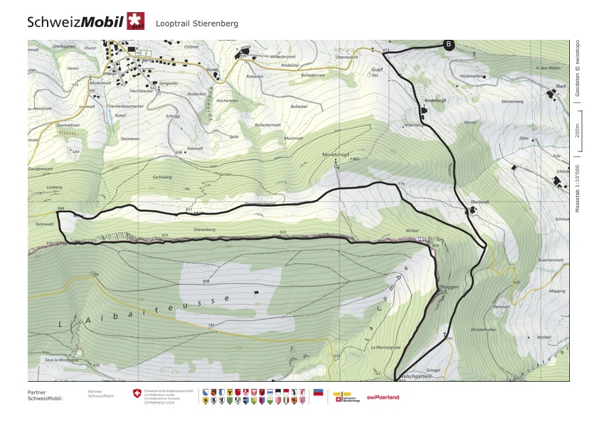 | Looptrail Stierenberg | Difficulty: T1 (Hiking Trail) Length: 8.90 km Duration: 2:41 h Ascent/Descent: 405m/404m |