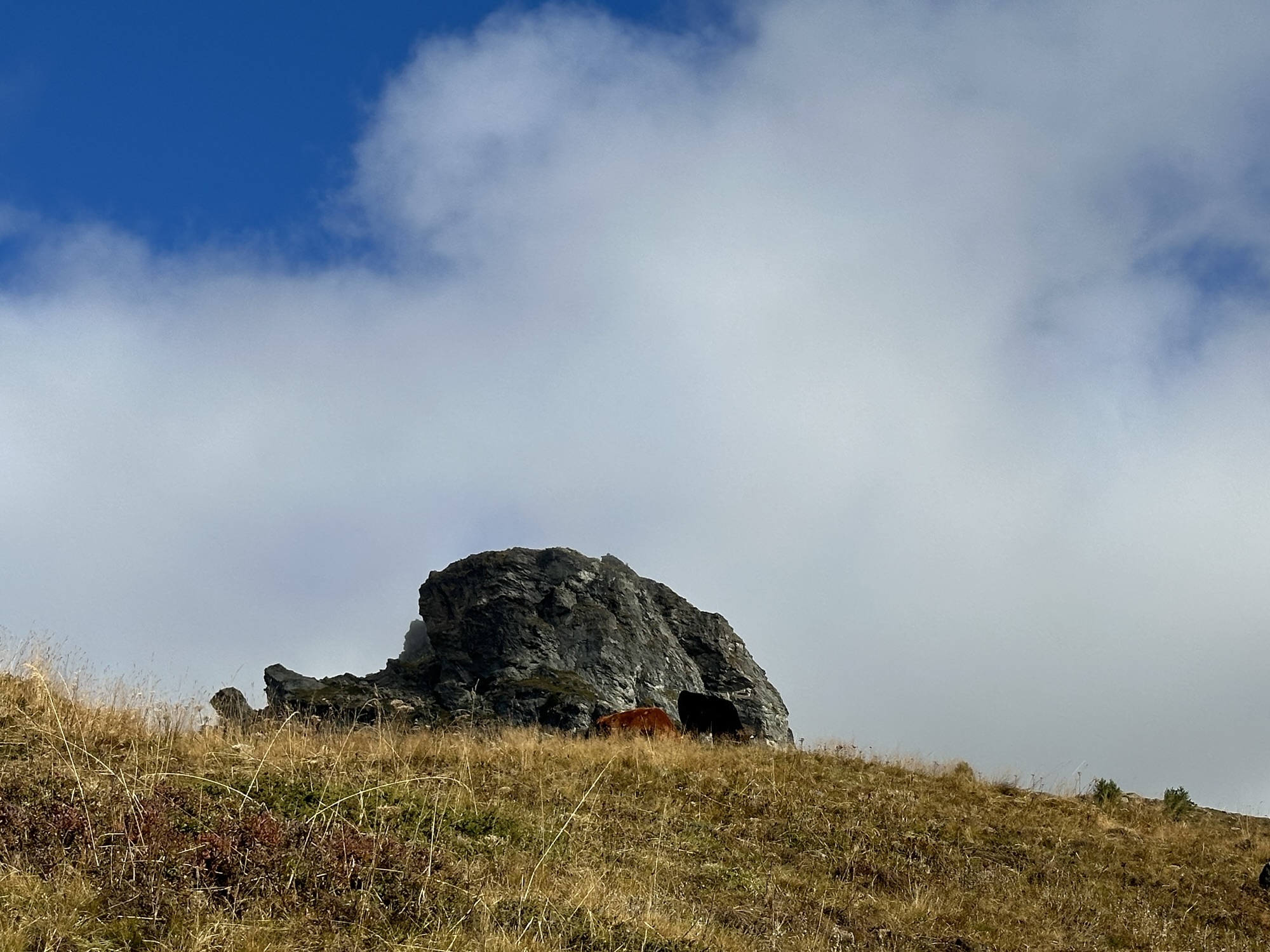 At about 2’100 meters we noted that we felt the air slowly getting thinner due to the height. And Sam alluded to his slowly growing physical exhaustion. By this point we were hiking for about five hours and the warm sun burning on our heads as well as the steady ascent of the last hours started to get to him. But the will to reach that hut was bigger and we continued on.