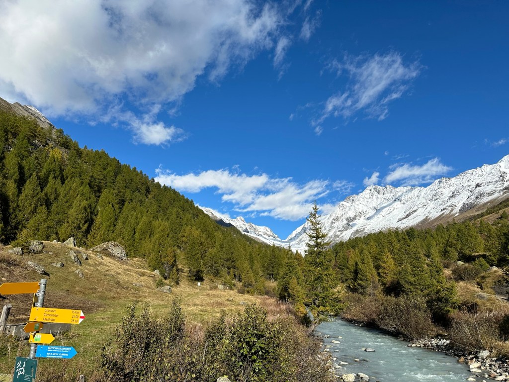 Something I have longed to see (again) for a long time was the Larches in their yellow dresses. There are a few places in Switzerland that offer amazing hikes in between the trees and one of them is the Lötschental in the Oberwallis. While we were probably just about ten days too early to see the trees in their completely vibrant yellow, we experienced an absolutely amazing hike.