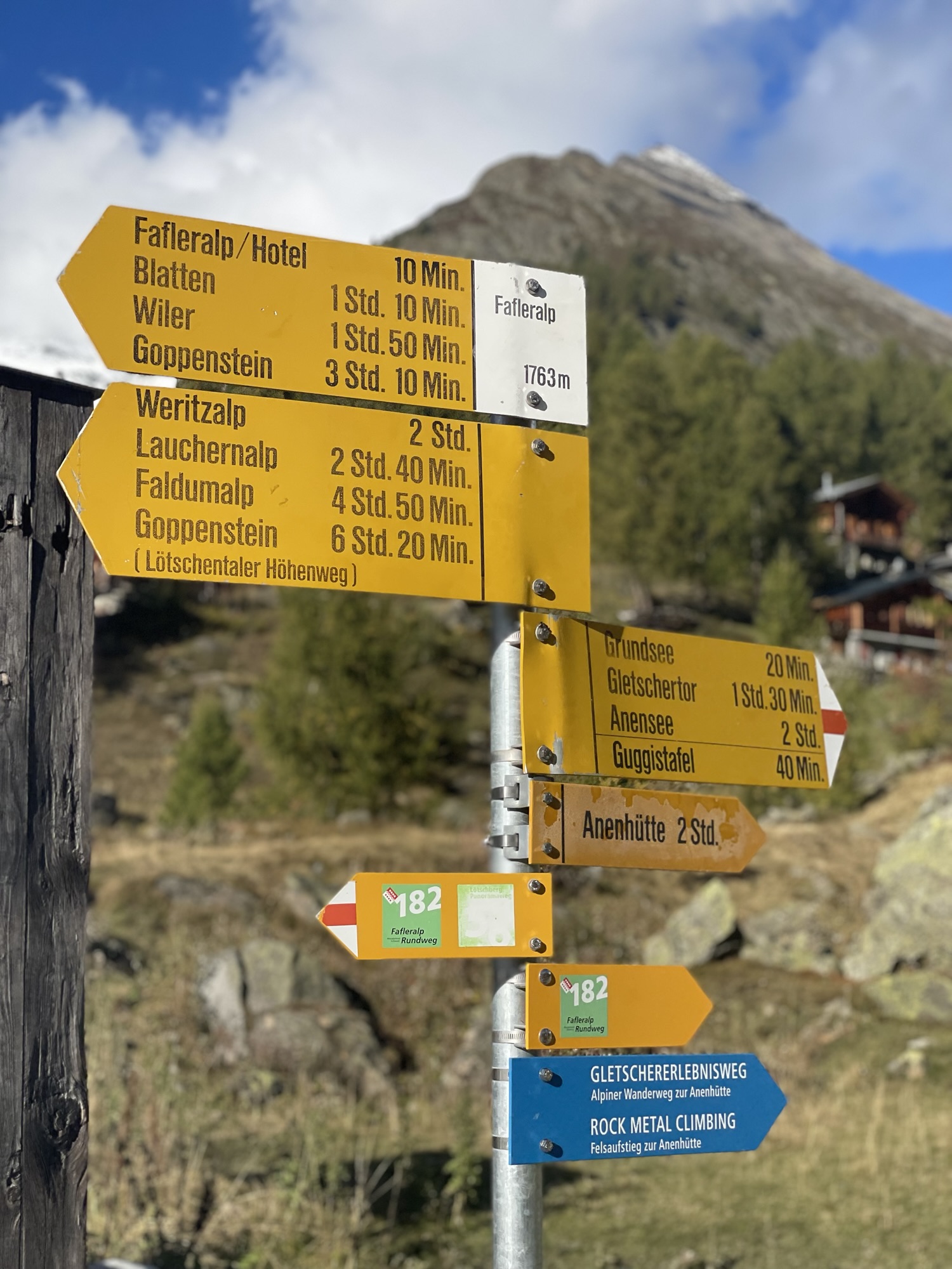 Above the Chiemwald at the rockwalls, I felt a slight tingling in my hands from the view down for the first time since we started hiking. But I had no real worries as the trail still was even and wide enough to walk comfortably. We slowly made our way down to Fafleralp, from where we branched off from the “Lötschtaler Panoramatrail” and walked over the Faflermattä to get on the “Fafleralp Rundweg” which we would continue to hike in almost its entirety.