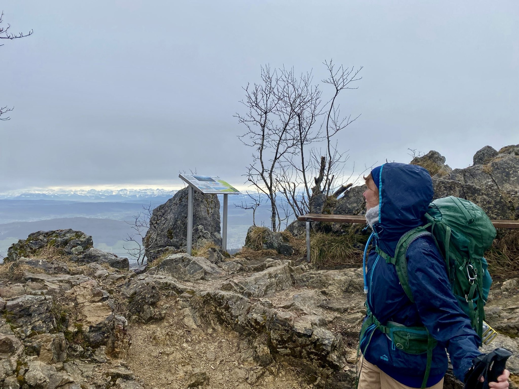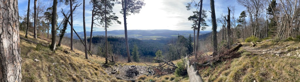 Eva and me met in Basel to take the train to Olten and from there reach the village of Hauenstein on the southern slope of the Solothurn Jura. Eva is a big fan of the mountains (who can blame her) and I wanted to find something with a view. To actually drive to the mountains was sadly out of reach for that day for various reasons and so an alpine panorama in the distance was the next best thing.