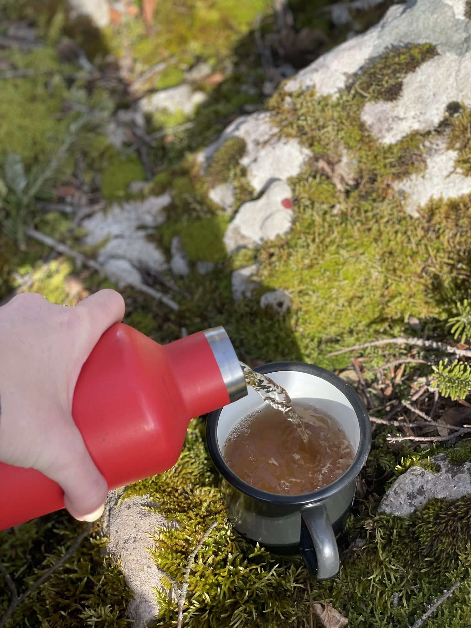 Already here the scenery and the view was simply too beautiful to just pass by and I decided to have a little break with some warm tea and a little lunch. It was windstill and quiet. Barely any other people were walking on the trail and I took probably one of the longest hiking breaks on my own so far. It is something that I am still learning to do properly. And as I am training myself to take my time resting along the trail, I come to realize how enjoyable it actually is. I think savoring ones own company doesn’t come easy to some of us and I have learned that little breaks like these in the company of nature are a wonderful way to practice. At least to me.