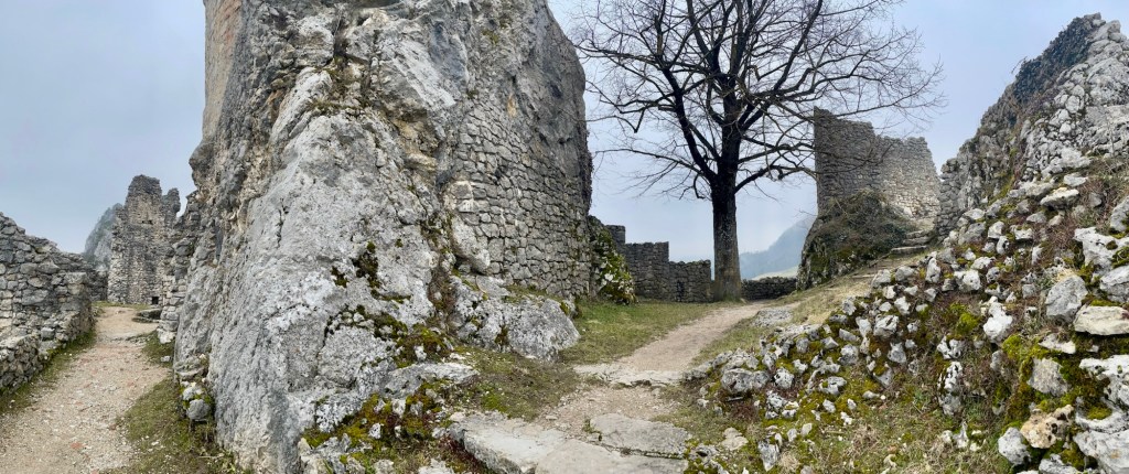 We started at the hamlet St. Wolfgang and immediately began to climb up to the first castle ruin, Neu Falkenstein. We couldn’t resist to have a closer look at the impressive site and explore the various former rooms and areas. Probably built in the 12 century, the castle has been a ruin since the french revolution, when an angry mob marched to the castle and set it on fire. The only part surviving the fire was the castles tower, still standing today.