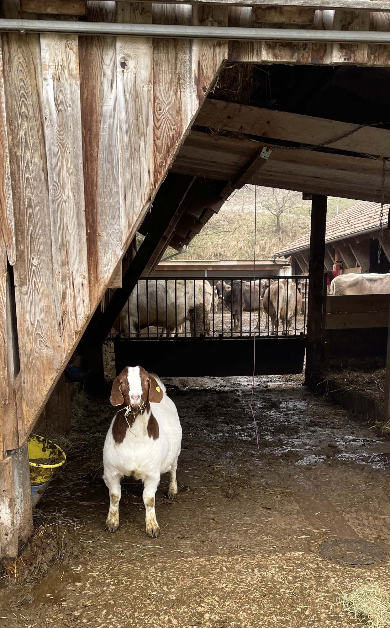 Our forest section was over and we now followed the small asphalt road to Seewen, which would be the end of our hike. The village lay peaceful nestled within the rolling hills, wrapped in soft bluish clouds. Our hopes for a restaurant and another hot coffee were sadly crushed, when we realized that surprisingly everything was closed. We did however find a small butchery that allowed us to use their toilet and in return we bought some little “hiking souvenirs”; local meat and a special artisanal herb salt. Perfect ingredients for a rewarding warm meal in the evening.