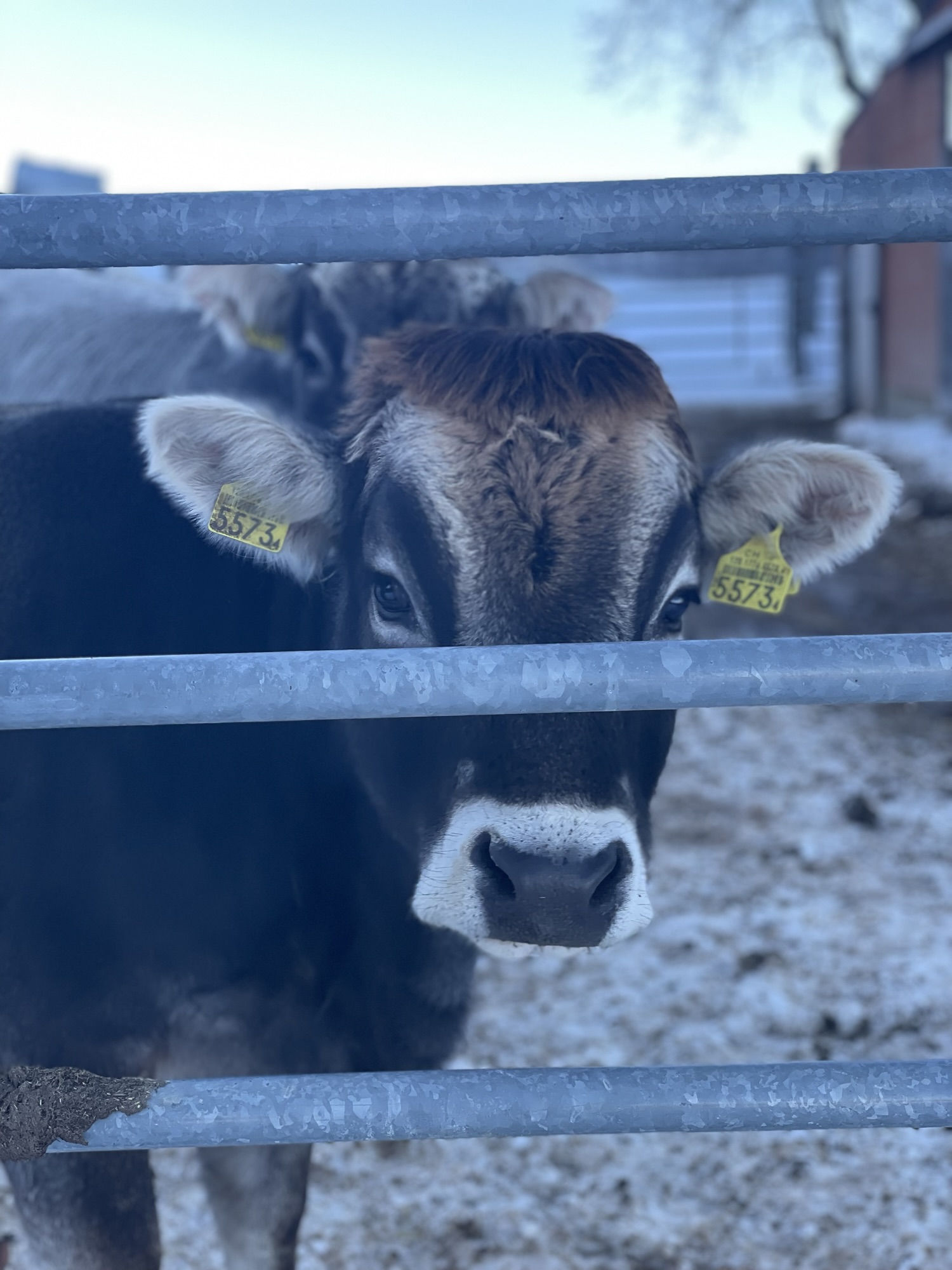 We were offered a breathtaking panoramic view over the Val Terbi in the south. Our path lead us right by the farm, fluffy cows with big eyes observing our every step though the high snow. There was no sign of a trail except for the clear bright yellow hiking signs in the distance. Other than that all we saw was white snow.