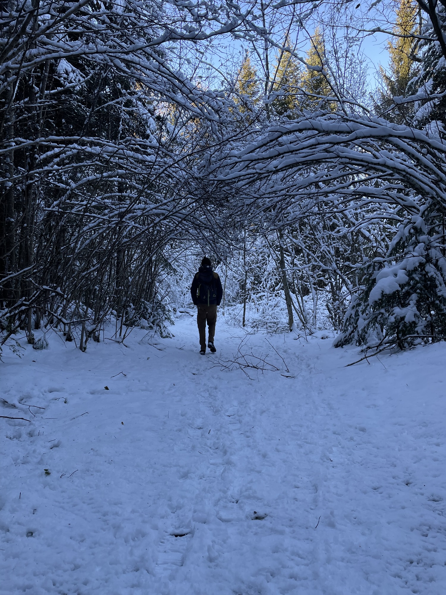 I started to feel slightly nervous as to how the trail up on the ridge would look like with all the snow but my husband – ever the calming and equally optimistic presence – eagerly started to tackle the next and final ascent through the forest up to the ridge without hesitation.